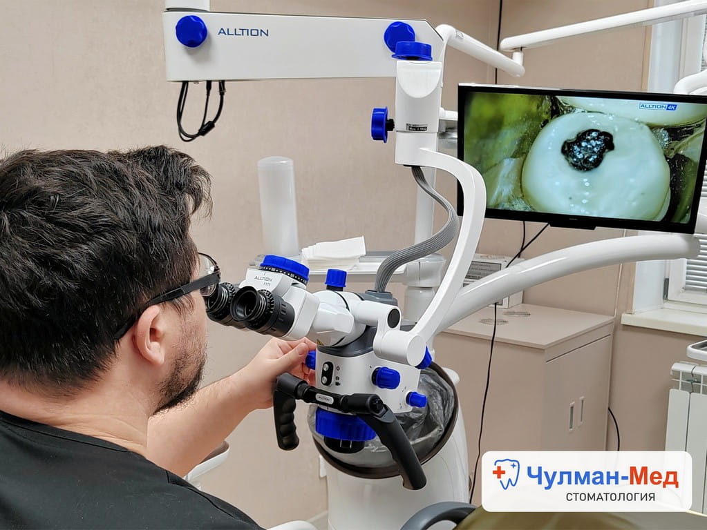 Чтобы дать вам лучшее лечение, наши врачи должны видеть больше. Поэтому в «Чулман-Мед» мы используем хирургический микроскоп. Он дает 5-кратное увеличение и подсвечивает ткани специальными фильтрами.